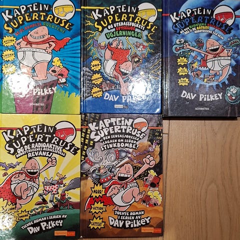 4 bøker fra serien Kaptein Supertruse. 3 av bøkene er samme historie.