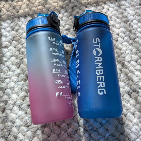 Superdry termoflaske i rosa/hot pink farge med gradientdesign. Flasken er i metall med skrukork som har o-ring/gummiring.