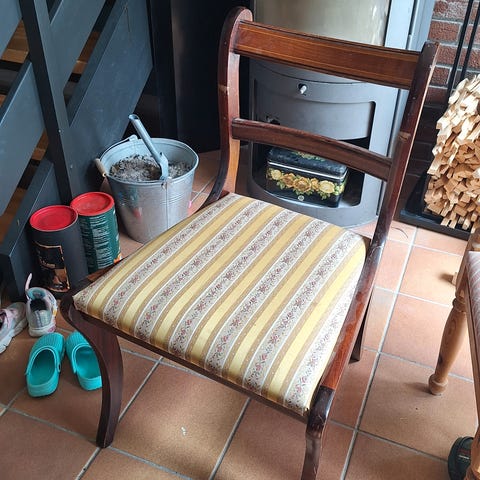 Eldre stol , tilsynelatende trekt om igjen i nyere tid. Fargen er fin og jevn.