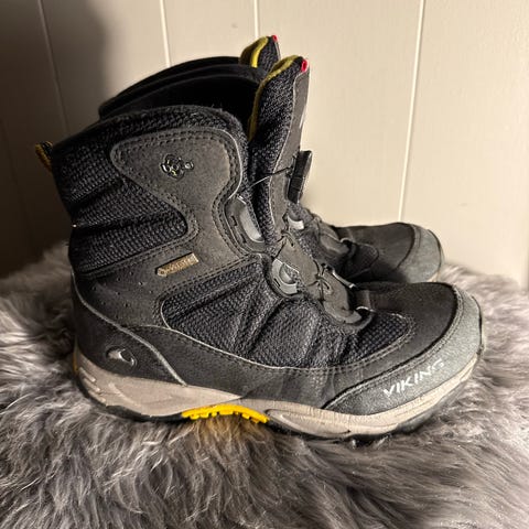 Veldig lite brukt Viking barnesko for unisex, størrelse 37. Skoene har borrelåser for enkel justering og en gummisåle med godt grep. Designet for å gi komfort og støtte til barnets føtter.