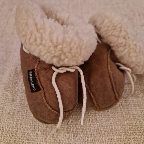 Fårskinns tossor till baby strl 6mån till 1 år beige farge från Sheperd