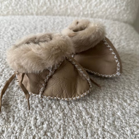 Beige Sheperd baby fårskinn sauskinn sheepskin tossor sko