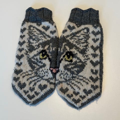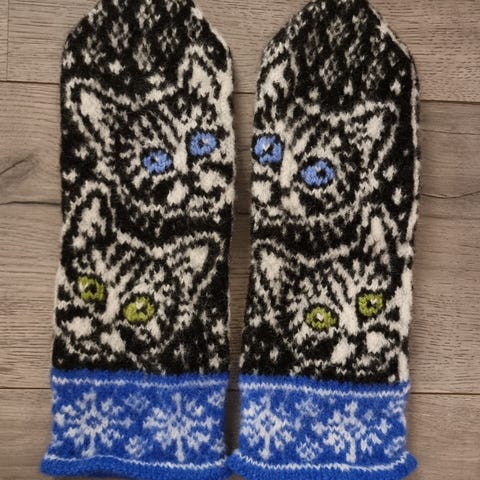 Glad i katter?Ny hjemmestrikket Kattevotter,dame S/M,100% tynn merinoull