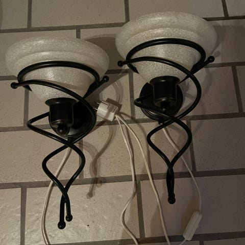 Selger to stykk vegglamper. Usikker på hvor gamle de er. Pris er for begge. Fin mørk messing lignende farge på de.