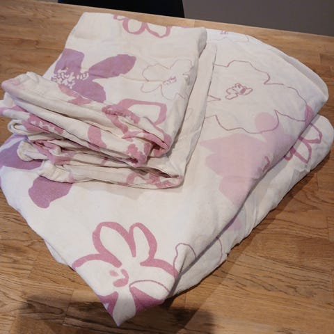 Har klart det kunststykke å kjøpe 2 sett med feil størrelse. NB, Dette er dynetrekk str dobbeldyne. La ikke merke til det før etter de var ferdig vasket i vaskemaskinen. De er ikke brukt, kun vasket . Kr 250 pr. sett. Nypris 699,-