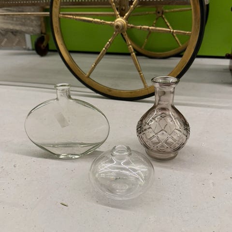 24 glass til lys selges samla. Brukt i ett bryllup, der vi satte dem på hodet og hadde kubbelys oppå. Kan også ha kubbelys inni, eller de kan brukes som telysholdere.