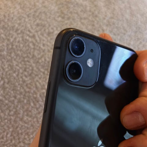 Noen bruksmerker rundt ramma. Men ellers er skjermen og baksiden ripefri.