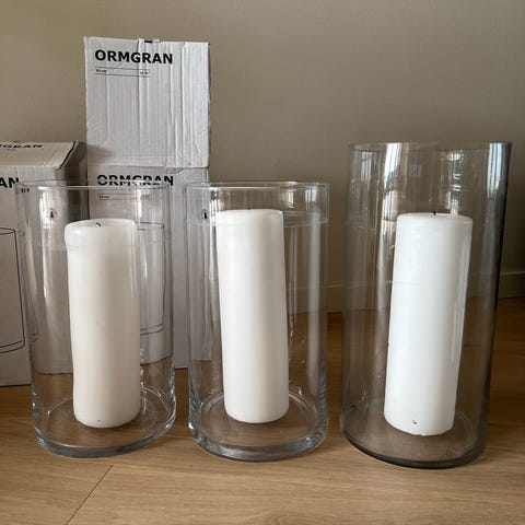 IKEA BERÄKNA vase i klart glass med en høyde på 18 cm. 12 stykker brukt i tre bryllup, selges samla.