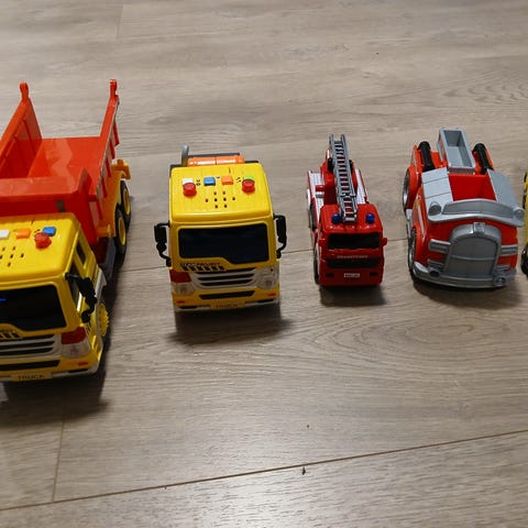 Selger div biler. Den brannbilen som er størst kan en ta vann inni og spruter ut, lyder men må nok bytte batteri.