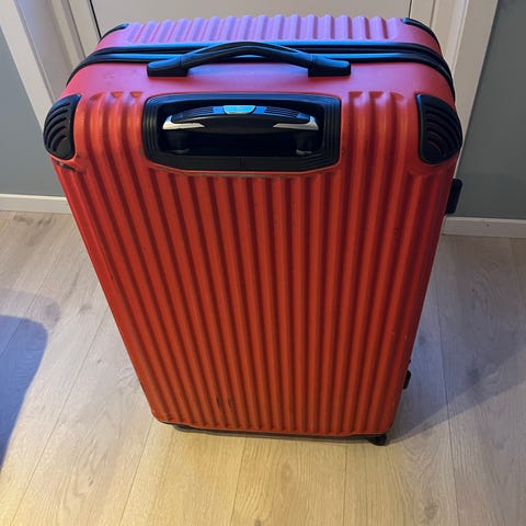 Mørk blå koffert selges, er kun blitt brukt en gang på ferietur. Kjekk størrelse og er lett å dra med seg/trille ☺️