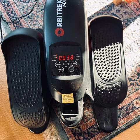 Pedaltrener. Sykkelmaskin for bruk i godstolen.