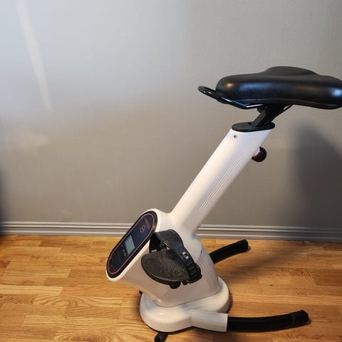 Pedaltrener med digital skjerm for tid, hastighet og kaloriforbruk. Svart farge og kompakt design for enkel bruk hjemme. Utstyrt med justerbare fotstropper for sikker trening. Måler hvor langt du har syklet og kalorier brukt. Må hentes i Drangedal.