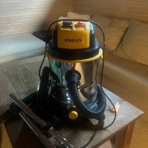 Nilfisk støvsuger med blå farge. Utstyrt med slange og håndtak for enkel bruk. Egnet for rengjøring av ulike typer gulvflater. Støvsugeren mangler munnstykket
