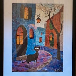 Rosina Wachtmeister. Fint fargetrykk av katter og blomster.