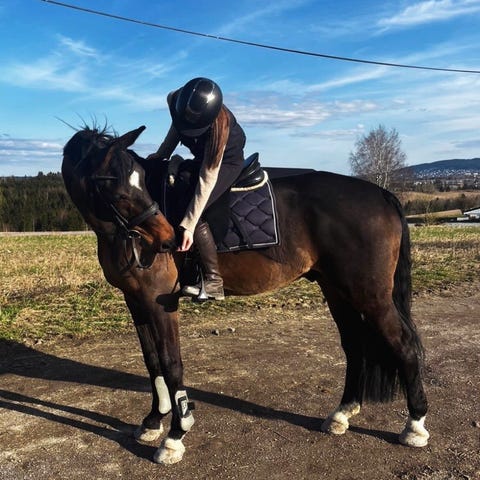 Jeg søker en pliktoppfyllende, erfaren og tøff rytter som kan ri hesten de ukene jeg er på jobbreiser.