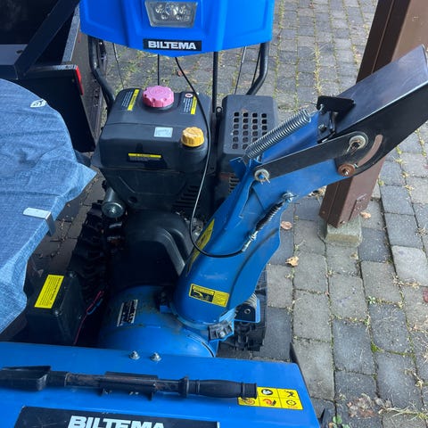 4 år gml. snøfreser ST 11002 fra Biltema, lite og pent brukt med kjettinger og trekk. (Nypris fres, kr.12.999,- + ca. kr.1.000,-, kjettinger og trekk) Selges pga. overgang til Atv m/ skjær.
