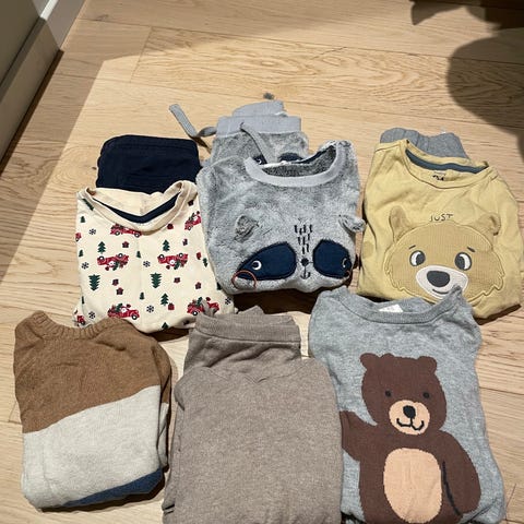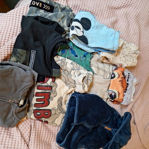 Noen plagg har merker etter mat, men kan likevel brukes.
