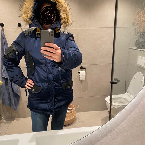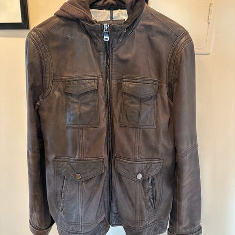 Selger en godt brukt jakke fra Zara. Har tatt bilder av skaden der det har løsnet bakpå jakken. Bare å spørre visst du lurer på noe mer :)