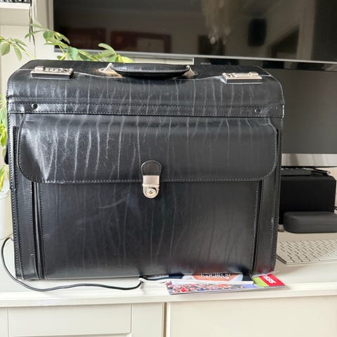 Solid stresskoffert fra Samsonite i en form for hardplast som beskytter godt. Nøkler medfølger. Pent brukt. Fin til oppbevaring og transport av dokumenter etc.