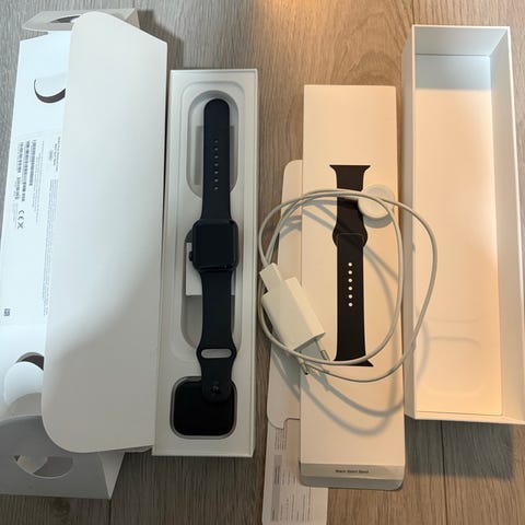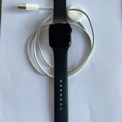 Apple Watch Series 5 smartklokke med svart reim. En smartklokke med berøringsskjerm, pulsmåler og flere helse- og aktivitetsfunksjoner. Brukt, men i god stand. GPS. 40mm.
