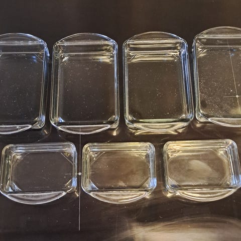 Holmegaard påleggsfat, 2 stk. Merket made in Denmark. Hører opprinnelig til med et teakbrett, men dette mangler. Selges samlet for 120,-.