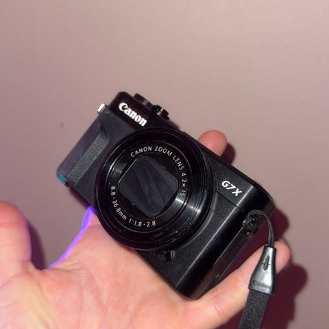 Selger en Canon PowerShot SX740 HS i svært pen stand. Kameraet er lite brukt og fremstår som tilnærmet som nytt. Det eneste å merke seg er noe lett slitasje i lakken på selve lensen – kun kosmetisk og har ingen påvirkning på bruk eller bildekvalitet. Se bilder i annonsen.