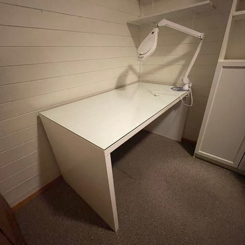 Pent brukt skrivebord. Brukt i ca 3 år, noe synlig merker på bordet men bordet kan fortsatt brukes.