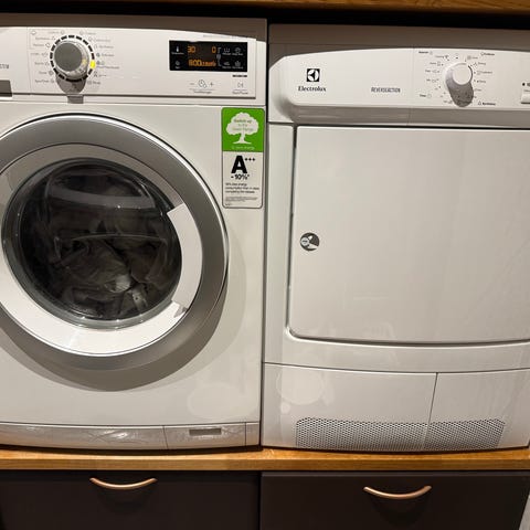 Maskinen er i god stand, og vi har vært veldig fornøyde med den. Den har et bredt utvalg programmer og vasker klær grundig og effektivt. Tørkefunksjonen er – i likhet med de fleste andre kombinasjoner – ikke like effektiv som en separat tørketrommel.