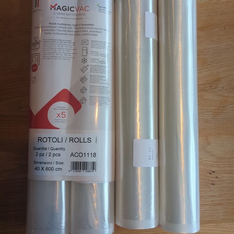 12 nye poser til vakumpakking av mat. Til bruk med vakuum maskin. 38 x 28 cm