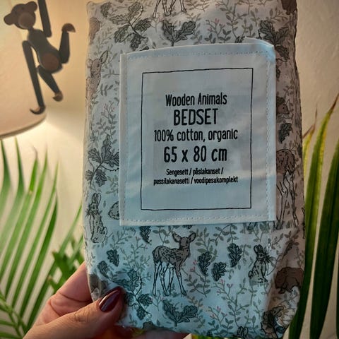 Lite og pent brukte sengeklær til barnesengen.