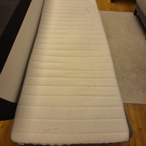 Selger denne pent brukte senga (120x200) mot henting. Selges til høyest bud. Følger med overmadrass og trekk