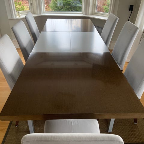 Disse elegante designerstolene er i god stand uten strukturelle skader, men har normal slitasje i kantene samt misfarging og fargebortfall. De trenger, og vil ha godt av et strøk maling eller lakkering, stolene selges derfor rimelig. Komforten er svært god – bedre å sitte i enn Syveren fra Arne Jacobsen – og stolene kan stables, noe som gjør dem praktiske og plassbesparende.