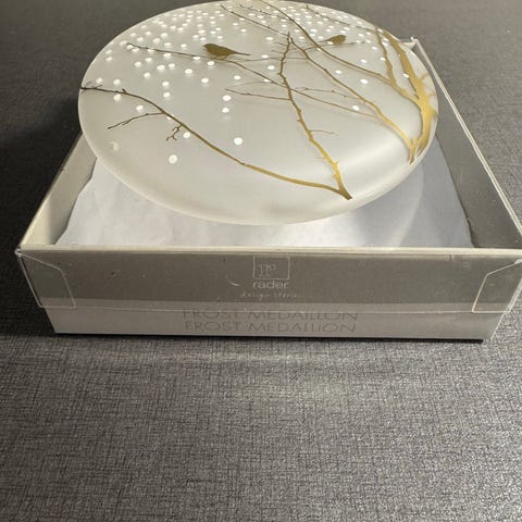 Gul påskehare i porselen selges for 50 kroner.