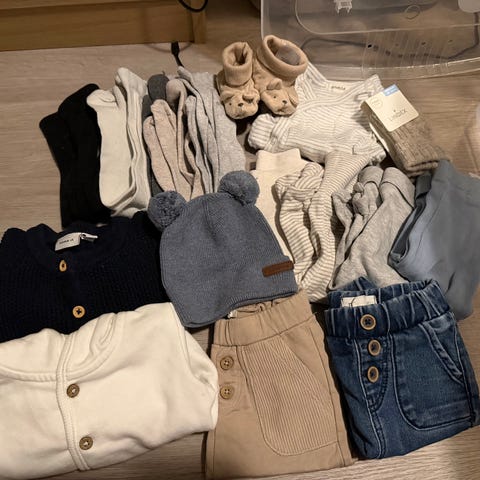 Selger en klespakke av barneklær sett i størrelse 56 & 62, flerfarget.