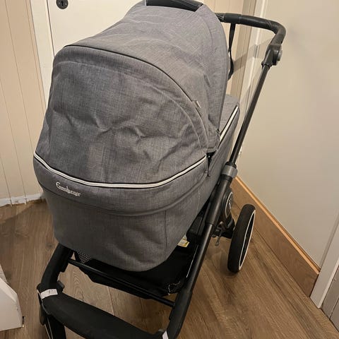 Selger en solid og komfortabel Emmaljunga barnevogn i sort farge. Vognen fremstår som pent brukt og har vært godt ivaretatt.