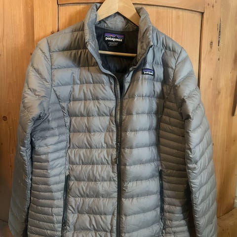 Tynn Patagonia dunjakke i turkis, dame str. M.