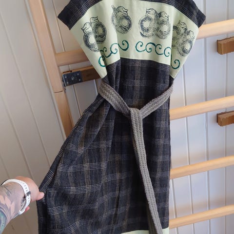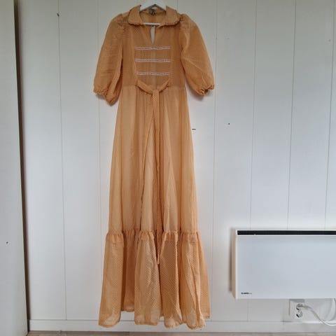 Langermet kjole med nydelige blader og blomster detaljer. Passende til en spesiell anledning, gjerne renfair / middelalder festival. Virker litt liten til størrelsen.