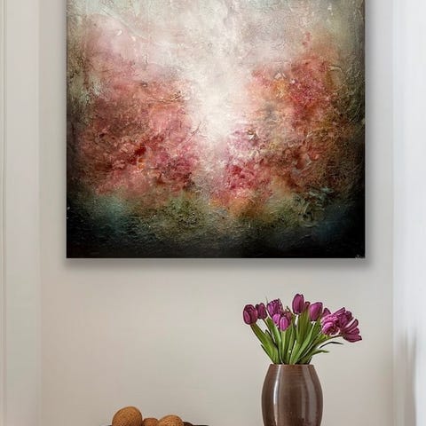 Vakkert abstrakt motiv printet på canvas og deretter malt med høykvalitets akrylmaling. Dette gir et spennende og moderne uttrykk som passer til de aller fleste stilarter. Antirefleks.