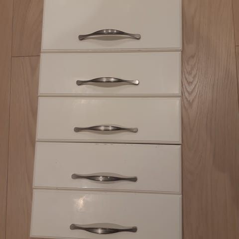 Skuffeseksjon med monteringsskinner for faktum skap 40 cm. Høy skuff med innvendig skuff. Liten skuff øverst. Sender ikke.