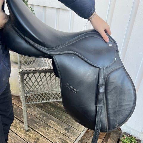 Fairfield 2023 allroundsal laget med komfortabel utforming til allroundridning. Kun vært prøvd på hest, men selges da den ikke passer til den tiltenkte hesten. Salene sendes ikke ut for prøving. Strl 17 i sete, i med utskiftbart bomjern. Bomjern i medium, vid og x-vid kan kjøpes med om ønskelig.