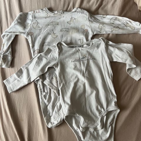 H&M barneklær i størrelse 74, flerfarget med dyremønster. Laget av bomull, egnet for både gutter og jenter. Pent brukt.