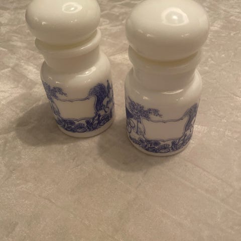 Porselenskrukkene har ofte et klassisk design med hvite flater, sorte bokstaver og gullkanter, som var vanlig på apotekinteriør fra sent 1800-tall og utover 1900-tallet