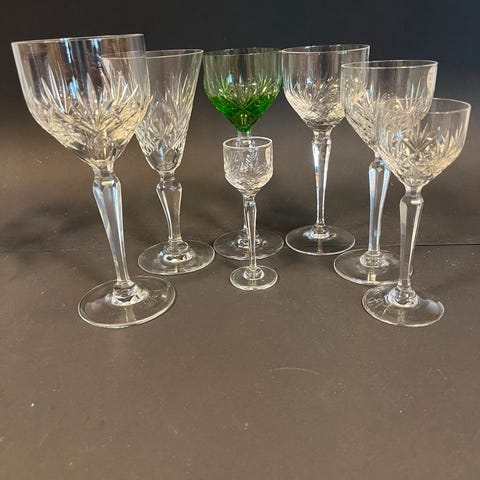 Hadeland Glassverk glassservise bestående av ulike typer glass. Glassene er laget i klart glass med gravert mønster. Passer til ulike anledninger og drikkevarer.