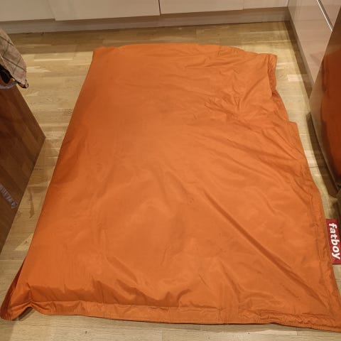 Selger vår røde fatboy i bomull. Den trenger en vask, men er hel og fin. Må hentes.