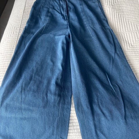 Flott retro slengbukse arvet av tane, fra trolig 80tallet. Dansk design i str 36, men denne passet meg akkurat som bruker str 24/32. Så vil si den er en XS. Høyt liv og flott flare, man får veldig fin rumpe i denne! En oljeflekk nederst på høyre fot - se bilder. Selges derfor billig.
