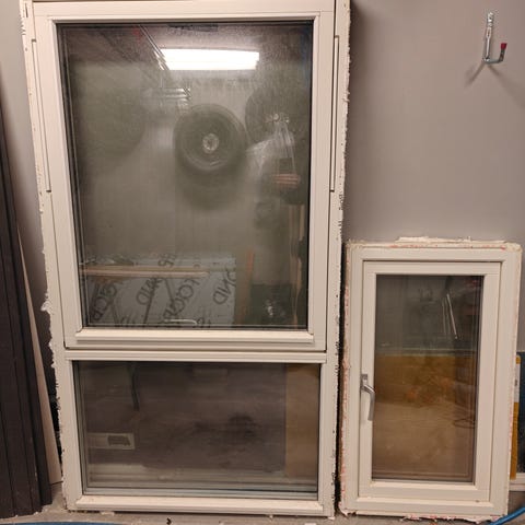 To av vinduene har dugg mellom glassene (punktert isolerglass).