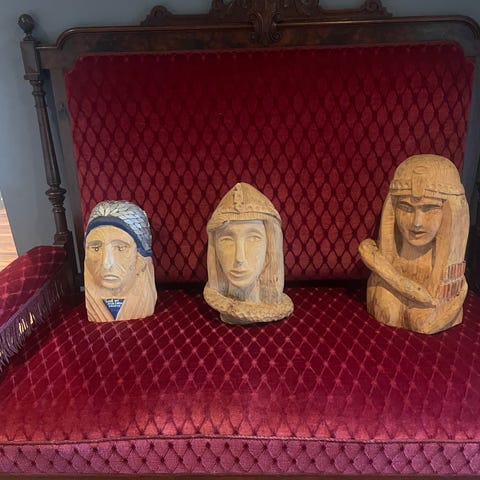 Liten veldig gammel lysestake i messing kr 100.- formet som en engel og en fugl lysestake kr 100.- Engelen holder en liten kopp for lys, og fuglen sitter på en rund base. Dekorative elementer i metall med gyllen farge. De andre litt større varianter er å finne i en annen annonse her på Finn. Trykk på mitt profilbilde og scroll nedover så kommer du til mine andre annonser også.