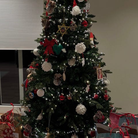 Pent og lite brukt juletre selges kunn med juletre teppene .