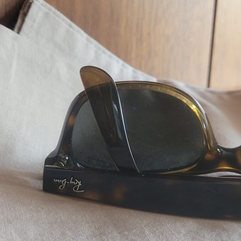 Ray-Ban solbriller for unisex. Brillene har en klassisk form og er laget i plastmateriale med mørke glass.
