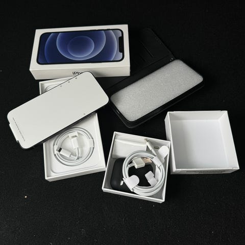 Mobiltelefon Apple iPhone 12 med 64 GB minne. Det er bruksspor, men ingen riper, den har blitt brukt med et beskyttelsespanel hele tiden. Telefonen leveres med originalemballasje, flere beskyttelsesdeksler med forskjellige design, telefonen inkluderer også Apple-hodetelefoner, som ble kjøpt separat fra telefonen og ikke har blitt brukt, det er et metallklistremerke på baksiden av telefonen for bruk av magnetstativet, det er ingen riper under klistremerket.Batteriet holder seg bra, 88 % /se vedlagt bilde nr. 6 /